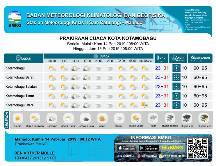 Cuaca Kotamobagu Kamis 14 Februari 2019